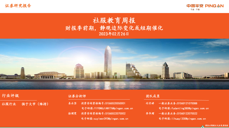 【平安证券】【20230226】社服教育周报:财报季前期,静观边际变化或短期催化-15页