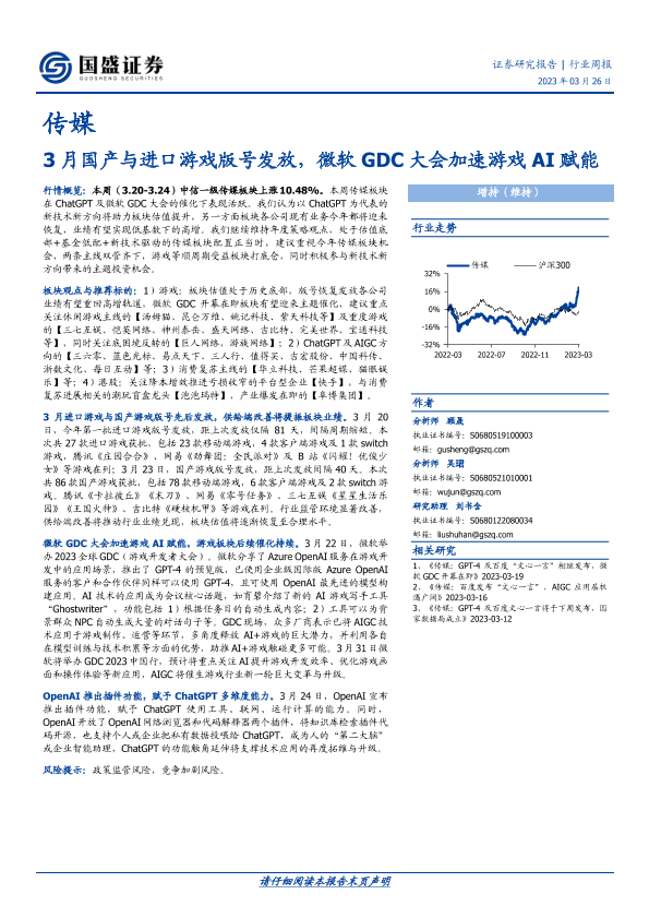 【国盛证券】【20230326】3月国产与进口游戏版号发放,微软GDC大会加速游戏AI赋能-10页