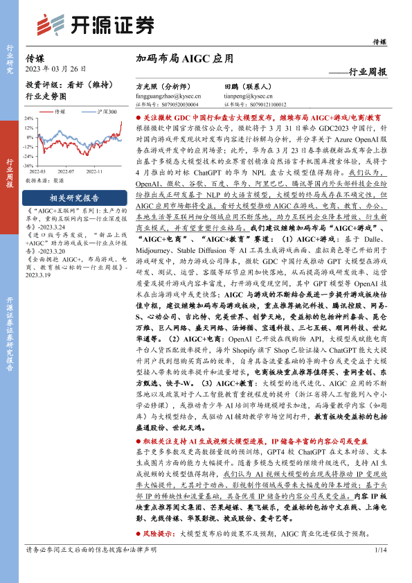 【开源证券】【20230326】传媒行业周报:加码布局AIGC应用-14页