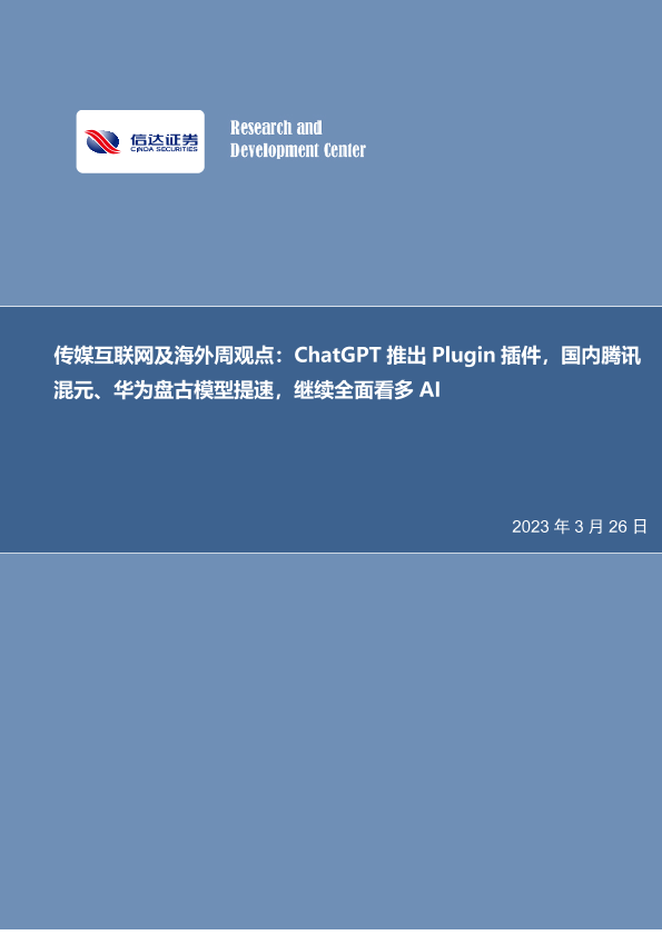 【信达证券】【20230326】周观点:ChatGPT推出Plugin插件,国内腾讯混元、华为盘古模型提速,继续全面看多AI-27页
