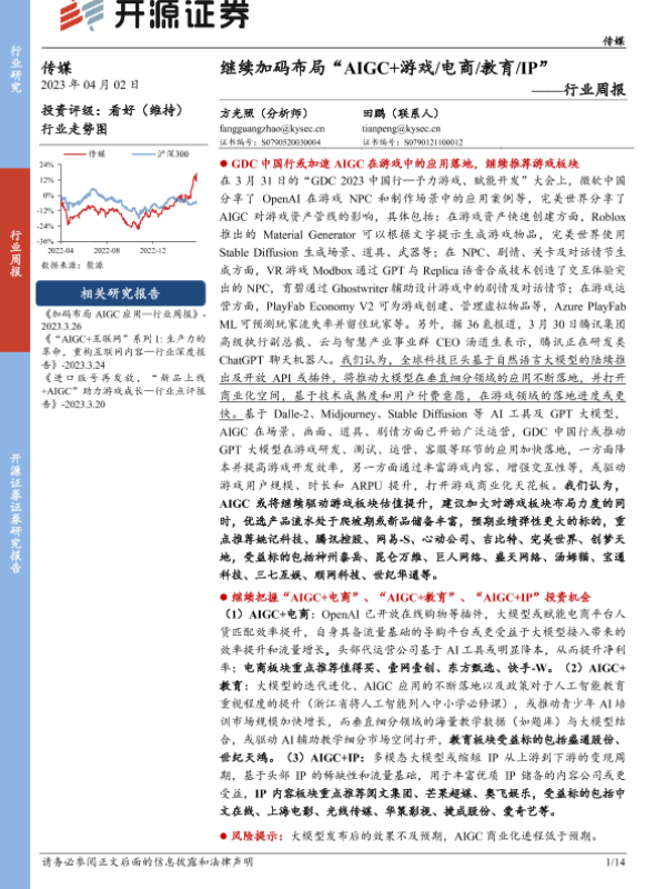 【开源证券】【20230402】继续加码布局“AIGC+游戏 电商 教育 IP”-14页
