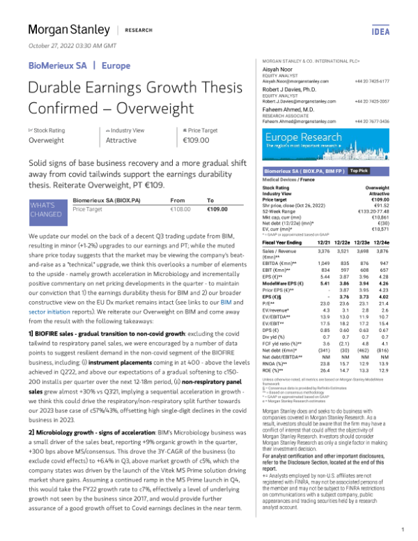 【Morgan Stanley】【20221027】nley-BioMerieux SA Durable Earnings Growth Thesis Confirmed-16页