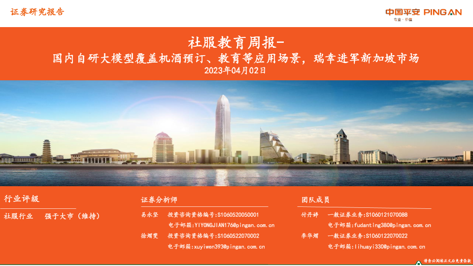 【平安证券】【20230402】社服教育周报:国内自研大模型覆盖机酒预订、教育等应用场景,瑞幸进军新加坡市场-15页