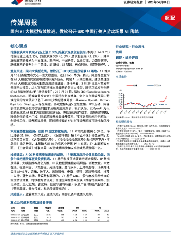 【国信证券】【20230404】国内AI大模型持续推进,微软召开GDC中国行关注游戏场景AI落地-20页