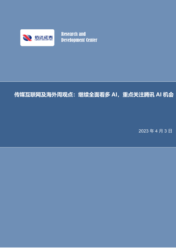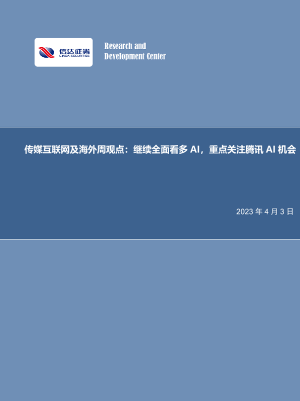 【信达证券】【20230403】传媒互联网及海外周观点:继续全面看多AI,重点关注腾讯AI机会-28页