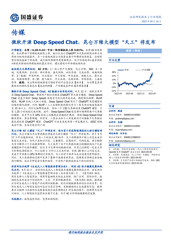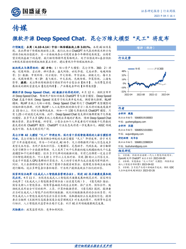 【国盛证券】【20230416】微软开源Deep Speed Chat,昆仑万维大模型“天工”将发布-10页