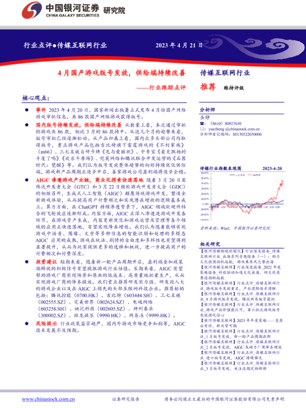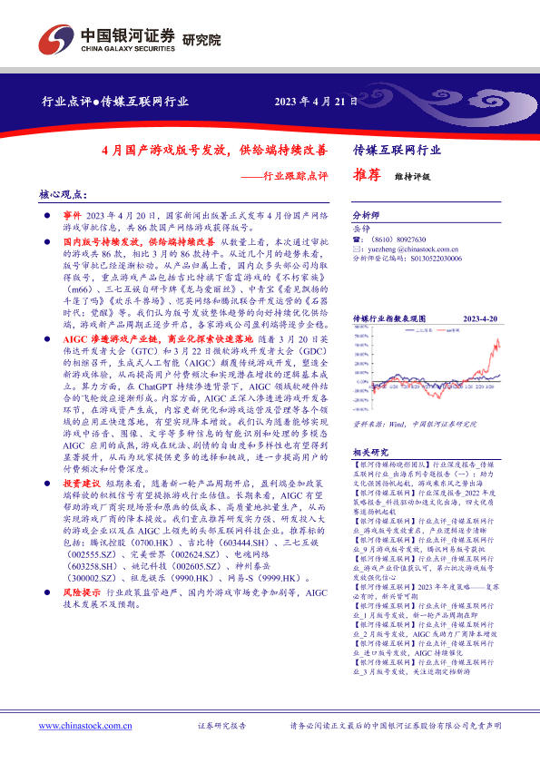【银河证券】【20230421】4月国产游戏版号发放,供给端持续改善-10页