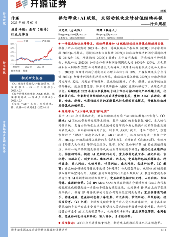 【开源证券】【20230507】供给释放+AI赋能,或驱动板块业绩估值继续共振-14页