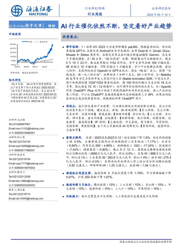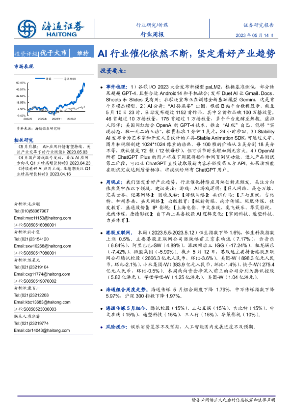 【海通证券】【20230514】AI行业催化依然不断,坚定看好产业趋势-10页