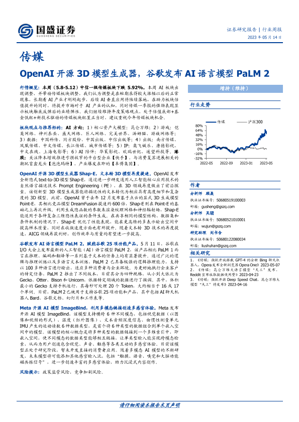 【国盛证券】【20230514】传媒行业周报:OpenAI开源3D模型生成器,谷歌发布AI语言模型PaLM 2-10页