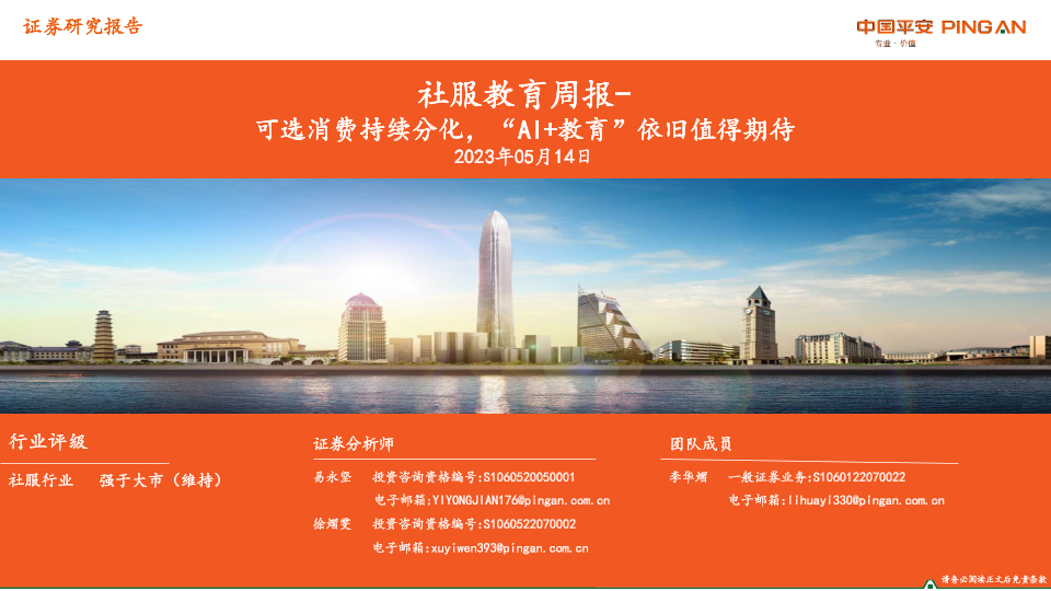 AI+教育 可选消费 周报 平安证券 社服教育