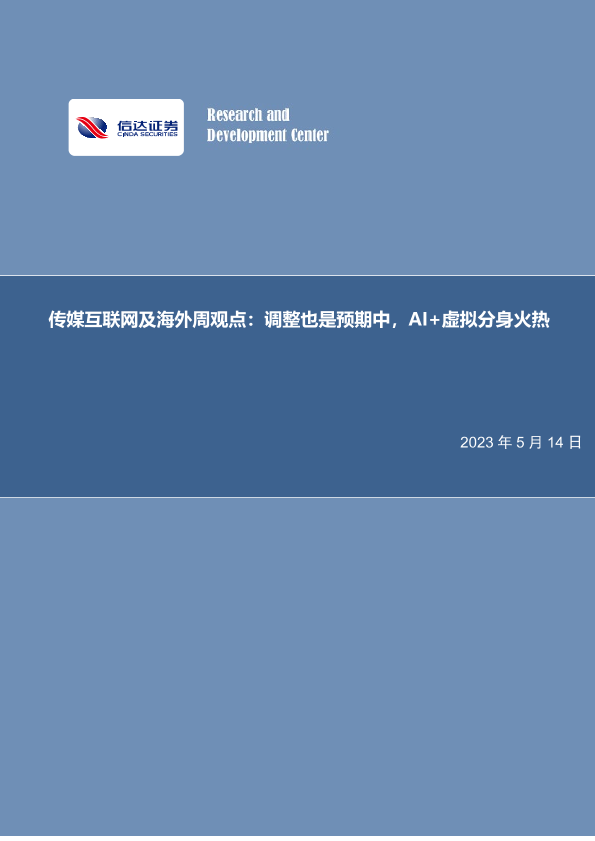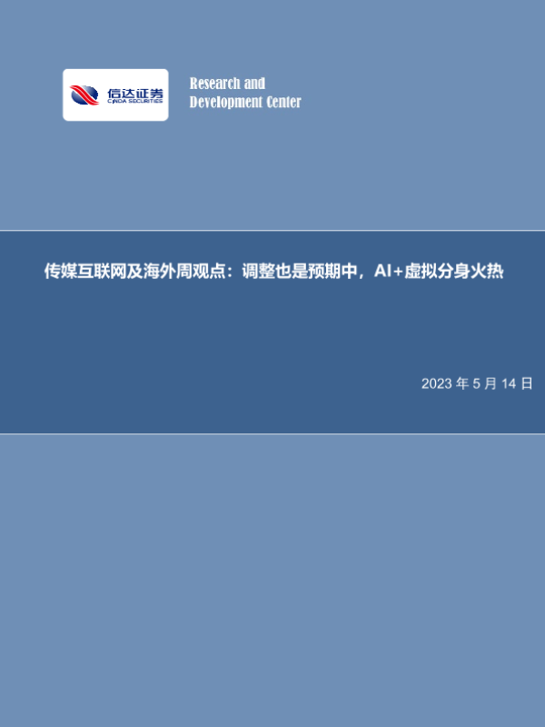 【信达证券】【20230514】传媒互联网及海外周观点:调整也是预期中,AI+虚拟分身火热-26页