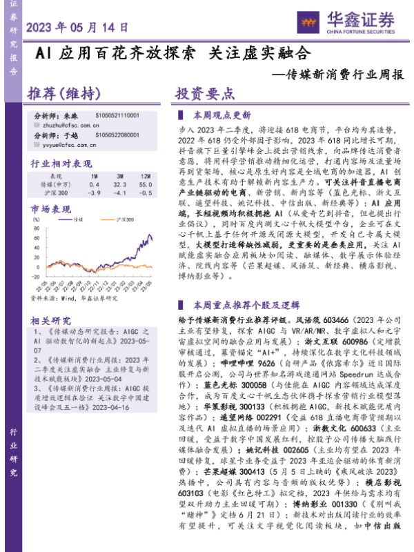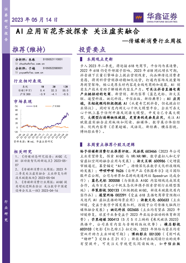 【华鑫证券】【20230514】AI应用百花齐放探索 关注虚实融合-20页