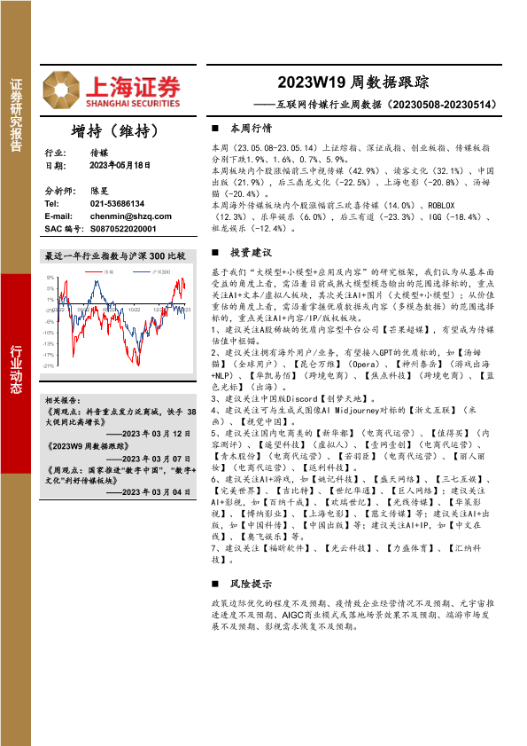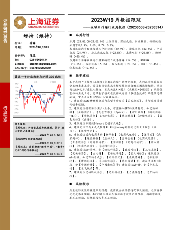 【上海证券】【20230518】2023W19周数据跟踪:互联网传媒行业周数据-21页