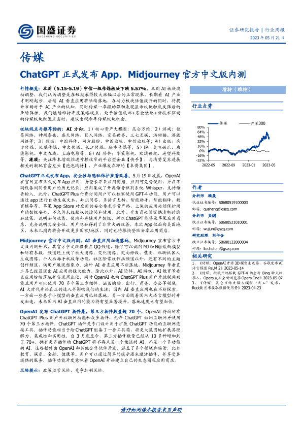 AI应用 证券分析 ChatGPT 传媒行业 Midjourney
