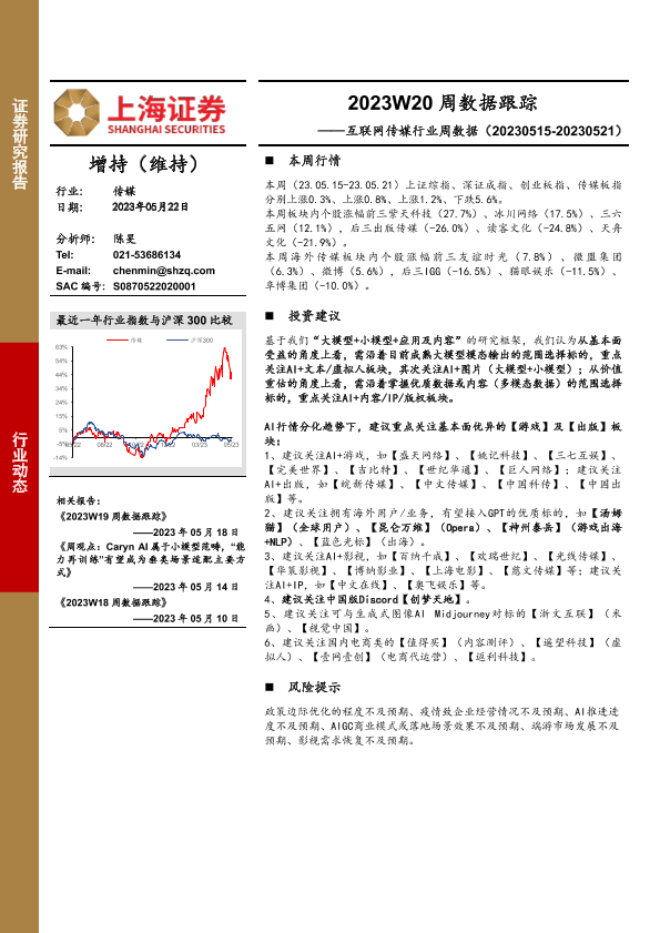 【上海证券】【20230522】2023W20周数据跟踪:互联网传媒行业周数据-20页