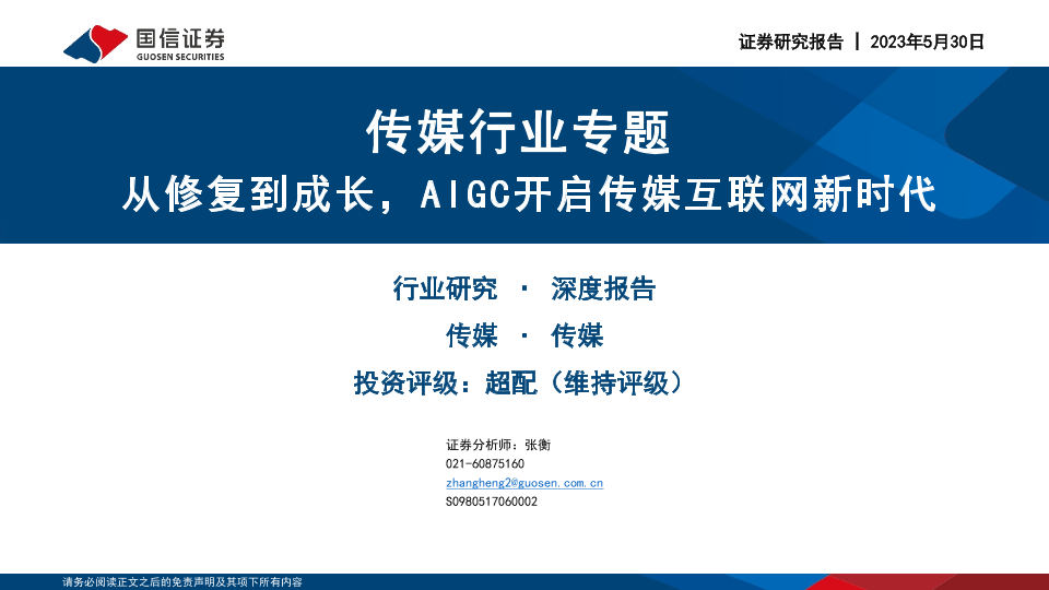 【国信证券】【20230530】从修复到成长,AIGC开启传媒互联网新时代-54页
