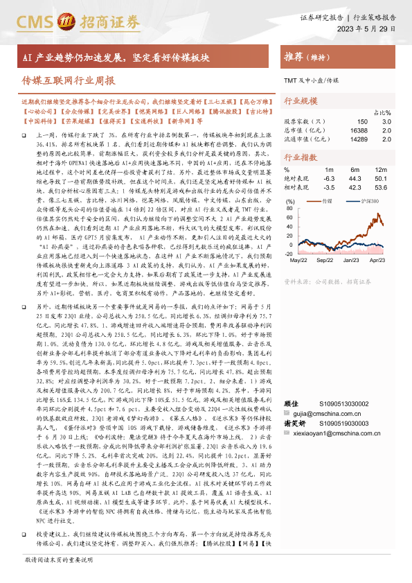 【海通证券】【20230529】传媒互联网行业周报:AI产业趋势仍加速发展,坚定看好传媒板块-12页