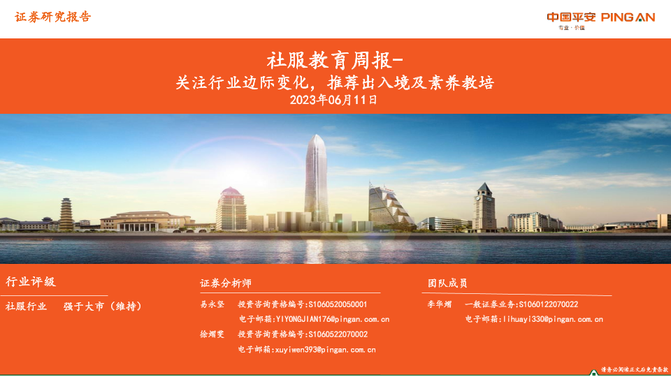 【平安证券】【20230611】社服教育周报:关注行业边际变化,推荐出入境及素养教培-16页