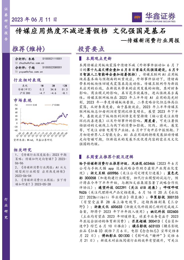 【华鑫证券】【20230611】传媒新消费行业周报:传媒应用热度不减迎暑假档 文化强国是基石-20页