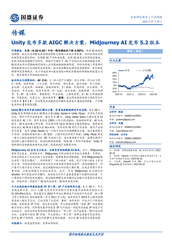 【国盛证券】【20230702】传媒行业周报:Unity发布多款AIGC解决方案,Midjourney AI发布5.2版本-10页