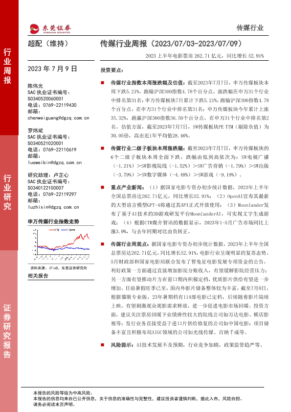【东莞证券】【20230709】2023上半年电影票房262.71亿元,同比增长52.91%-12页