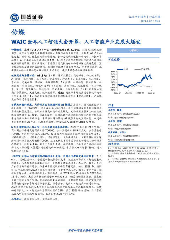 人工智能 传媒行业 市场分析 政策更新 游戏产业