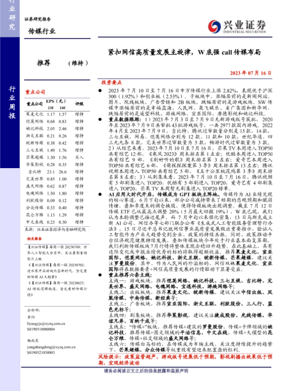 【兴业证券】【20230716】紧扣网信高质量发展主旋律,W底强call传媒布局-26页