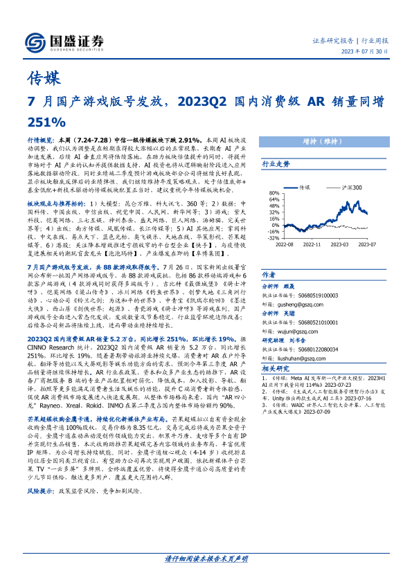 【国盛证券】【20230730】7月国产游戏版号发放,2023Q2国内消费级AR销量同增251%-10页
