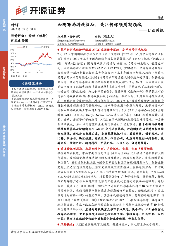 【开源证券】【20230730】加码布局游戏板块,关注传媒顺周期领域-16页