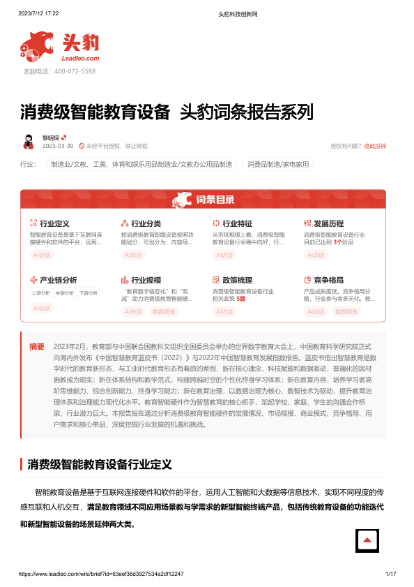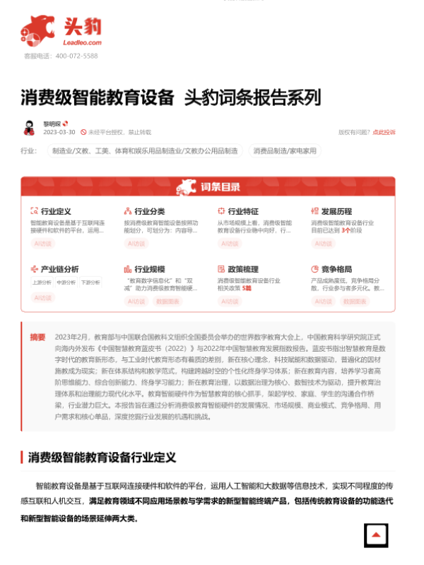 【头豹研究院】【20230712】消费级智能教育设备 头豹词条报告系列-17页