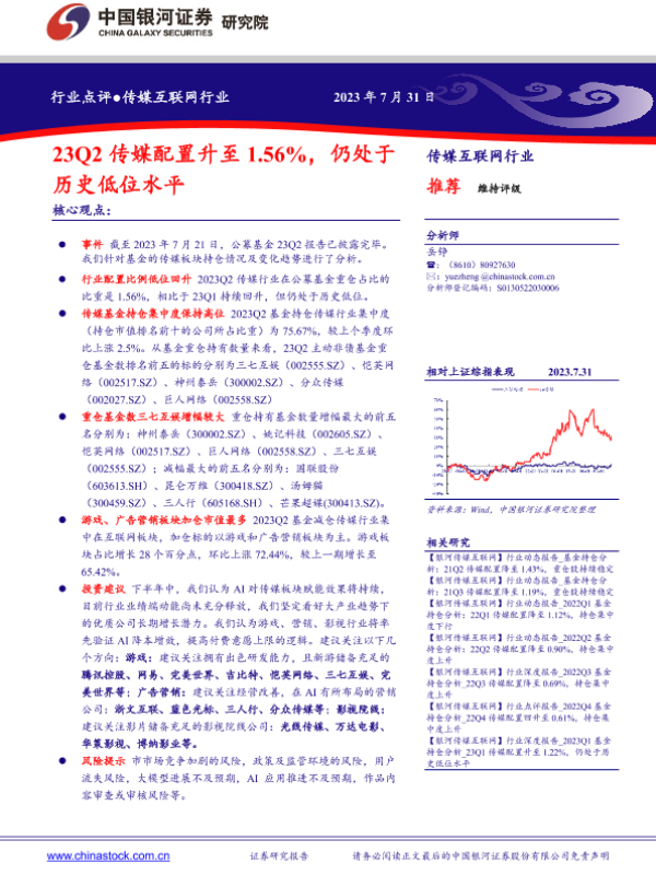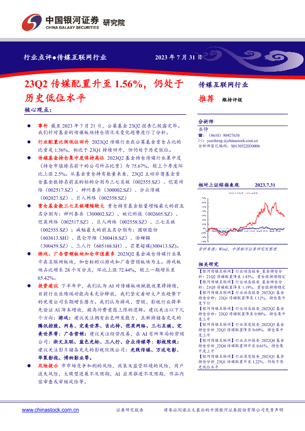 【银河证券】【20230731】23Q2传媒配置升至1.56%,仍处于历史低位水平-11页