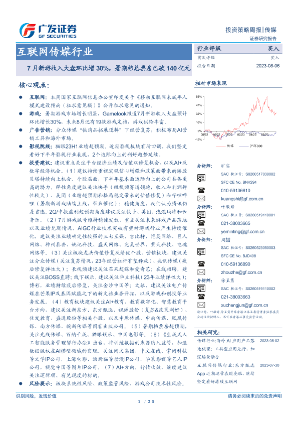 【广发证券】【20230806】7月新游收入大盘环比增30%,暑期档总票房已破140亿元-25页