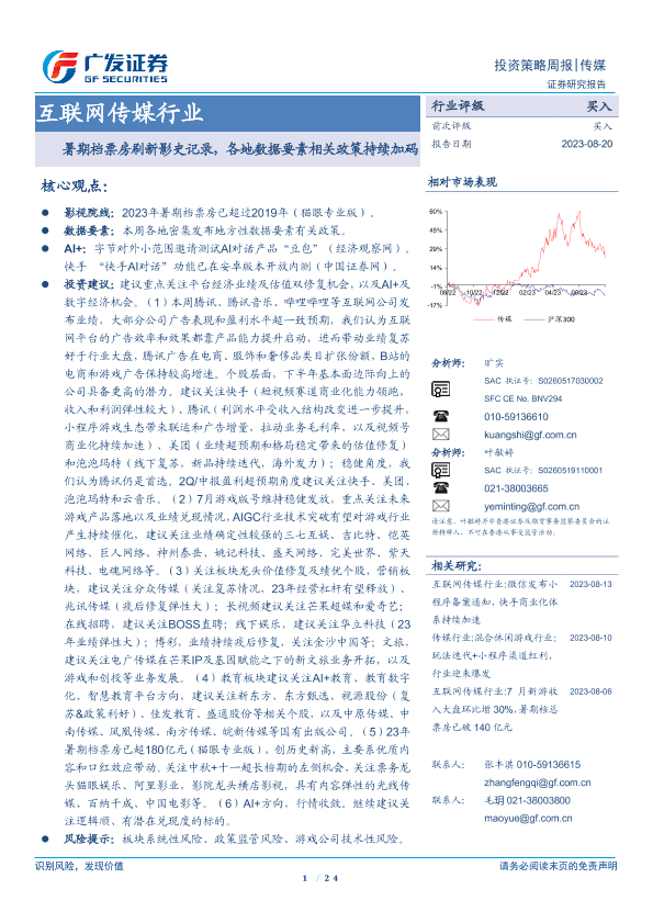 【广发证券】【20230820】互联网传媒行业投资策略周报:暑期档票房刷新影史记录,各地数据要素相关政策持续加码-24页
