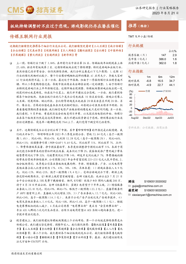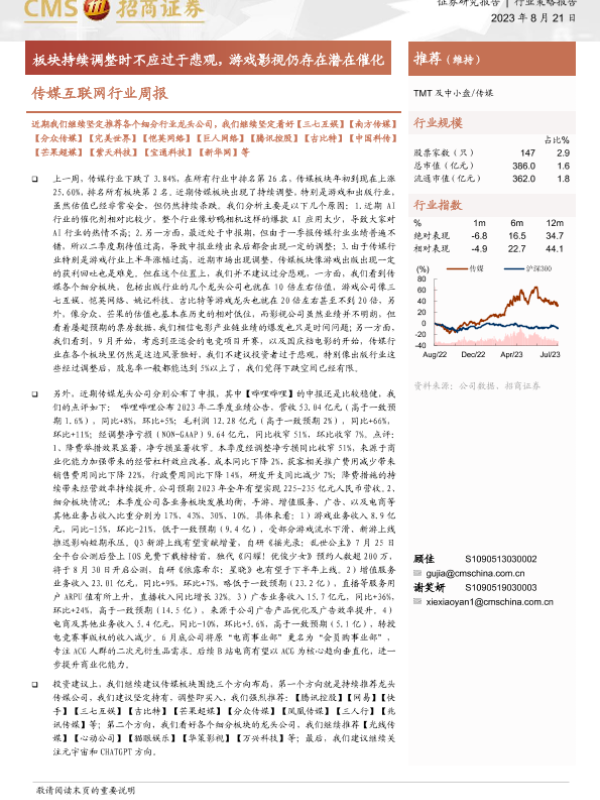 【海通证券】【20230821】传媒互联网行业周报:板块持续调整时不应过于悲观,游戏影视仍存在潜在催化-12页
