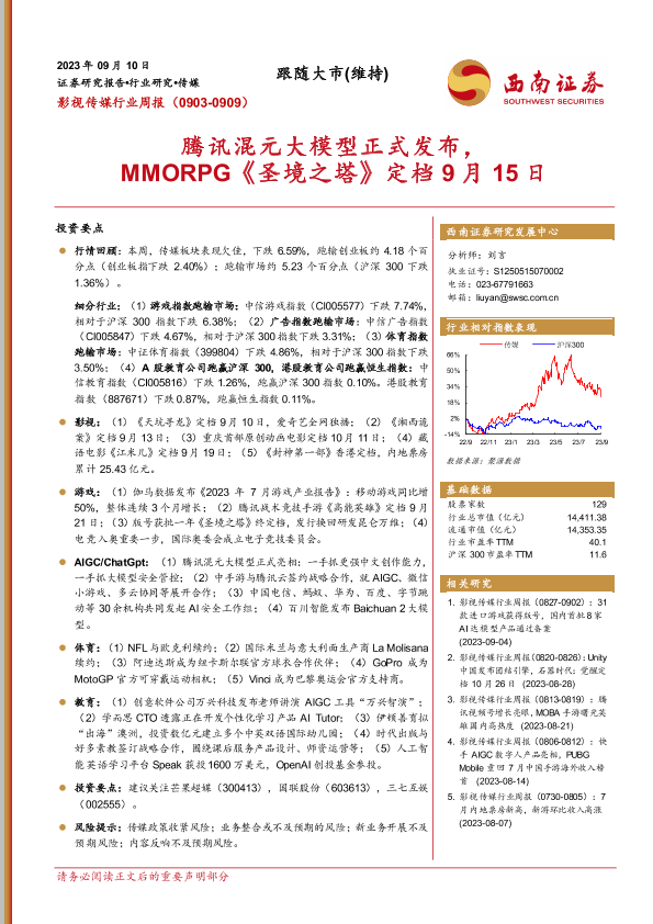 【西南证券】【20230910】影视传媒行业周报:腾讯混元大模型正式发布,MMORPG《圣境之塔》定档9月15日-21页