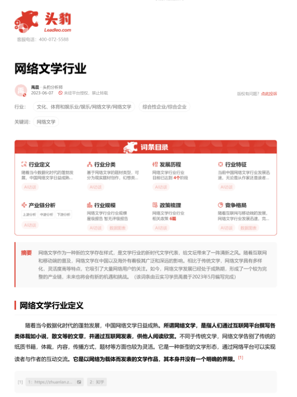 【头豹研究院】【20230912】网络文学行业 头豹词条报告系列-19页