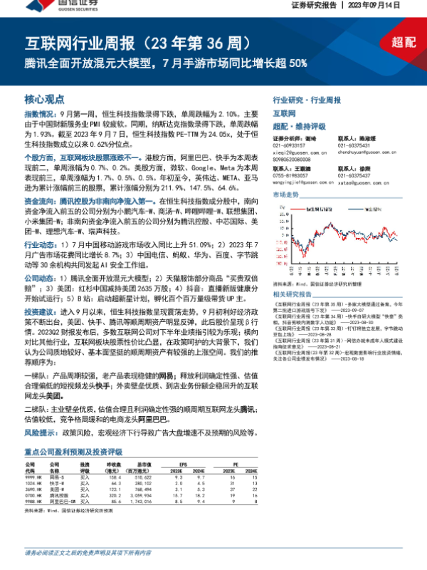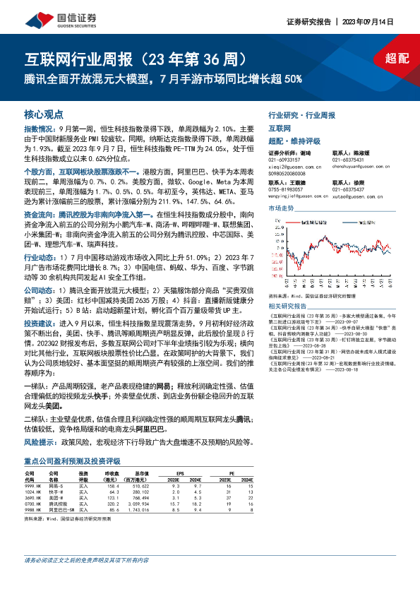 【国信证券】【20230914】互联网行业周报:腾讯全面开放混元大模型,7月手游市场同比增长超50%-13页
