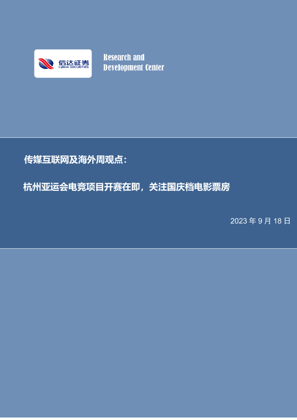 【信达证券】【20230918】杭州亚运会电竞项目开赛在即,关注国庆档电影票房-14页
