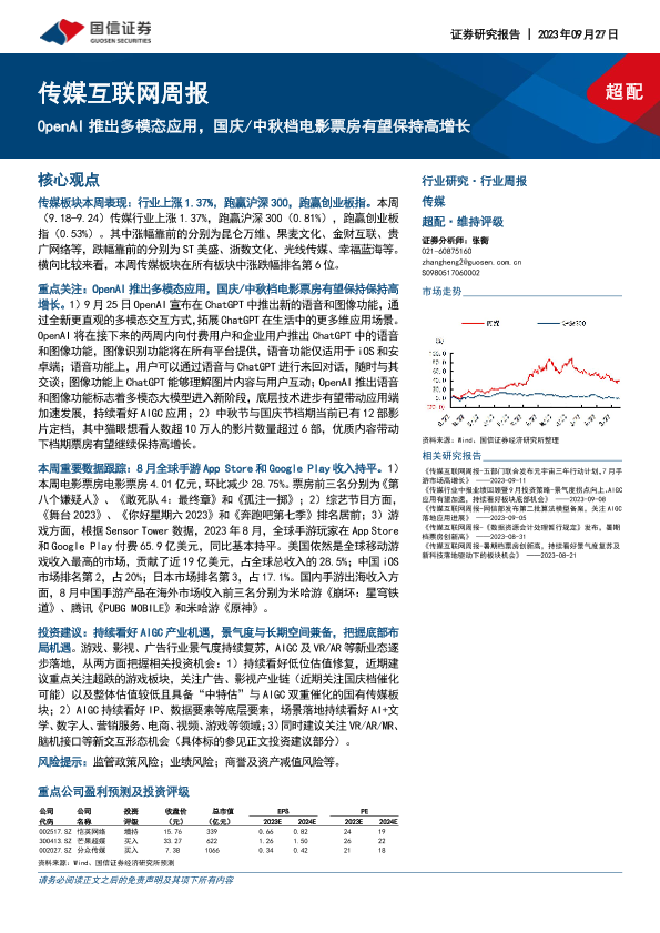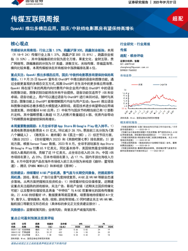 【国信证券】【20230927】OpenAI推出多模态应用,国庆/中秋档电影票房有望保持高增长-23页