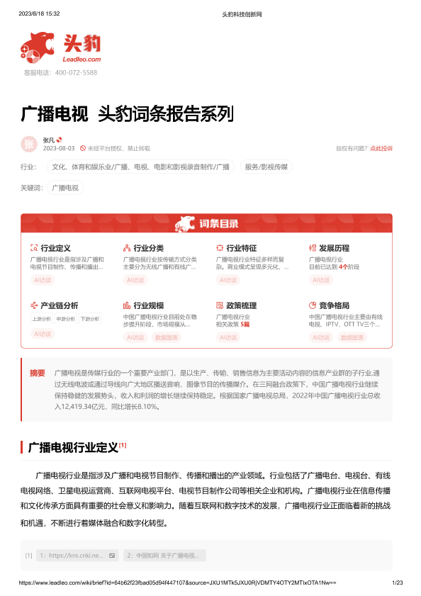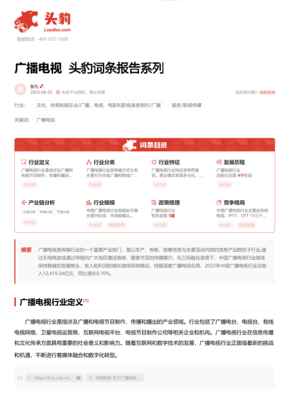 【头豹研究院】【20230803】广播电视 头豹词条报告系列-23页