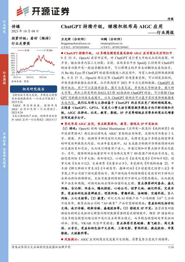 【开源证券】【20231008】传媒行业周报:ChatGPT持续升级,继续积极布局AIGC应用-16页