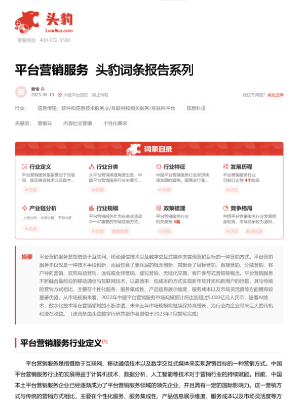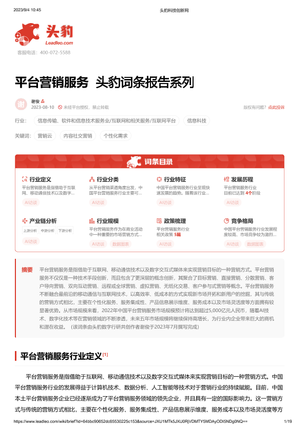 【头豹研究院】【20230810】平台营销服务 头豹词条报告系列-19页