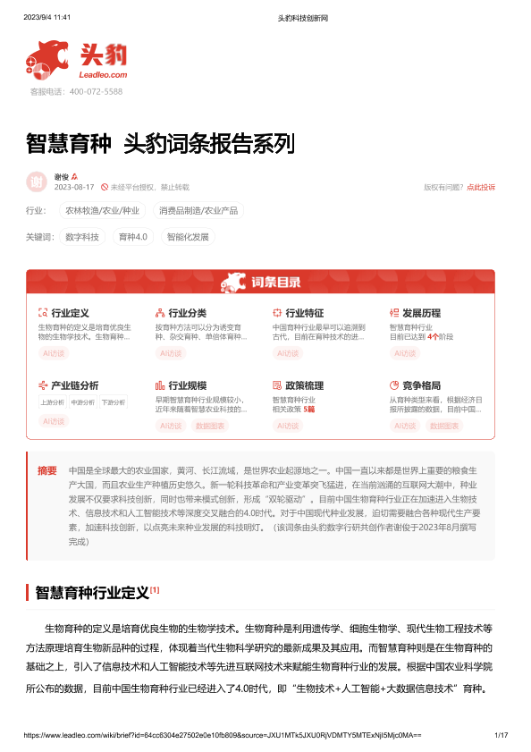 【头豹研究院】【20230817】智慧育种 头豹词条报告系列-17页