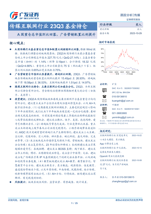传媒互联网 基金持仓 广告营销 港股互联网 游戏行业