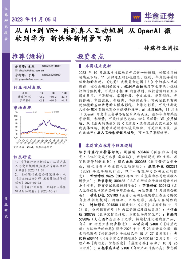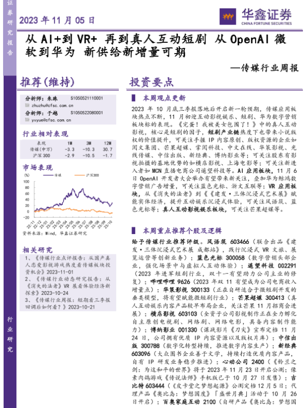 【华鑫证券】【20231105】从AI+到VR+再到真人互动短剧 从OpenAI微软到华为 新供给新增量可期-20页