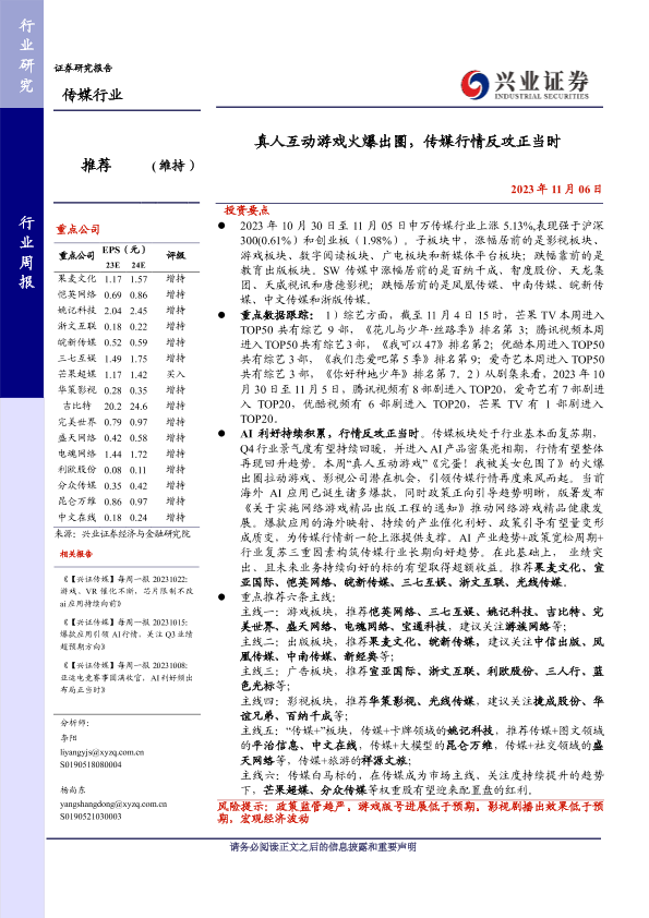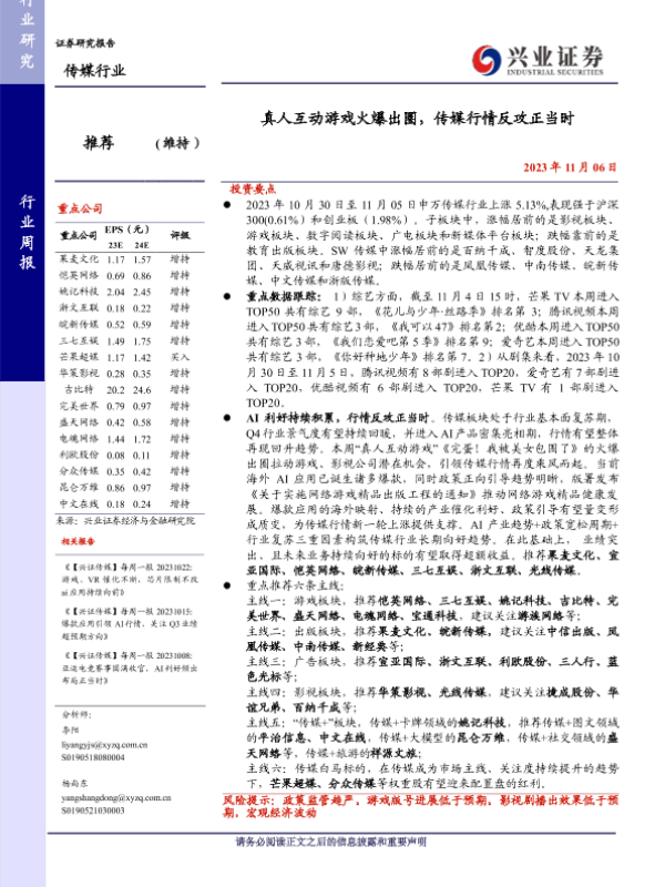 【兴业证券】【20231106】真人互动游戏火爆出圈,传媒行情反攻正当时-28页