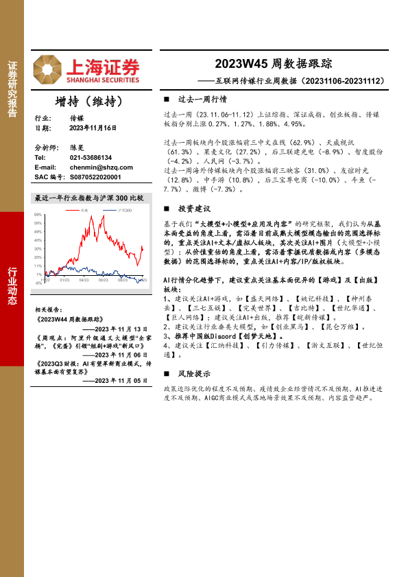 【上海证券】【20231116】互联网传媒行业周数据:2023W45周数据跟踪-19页