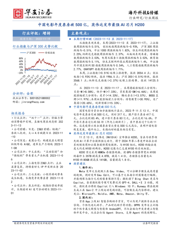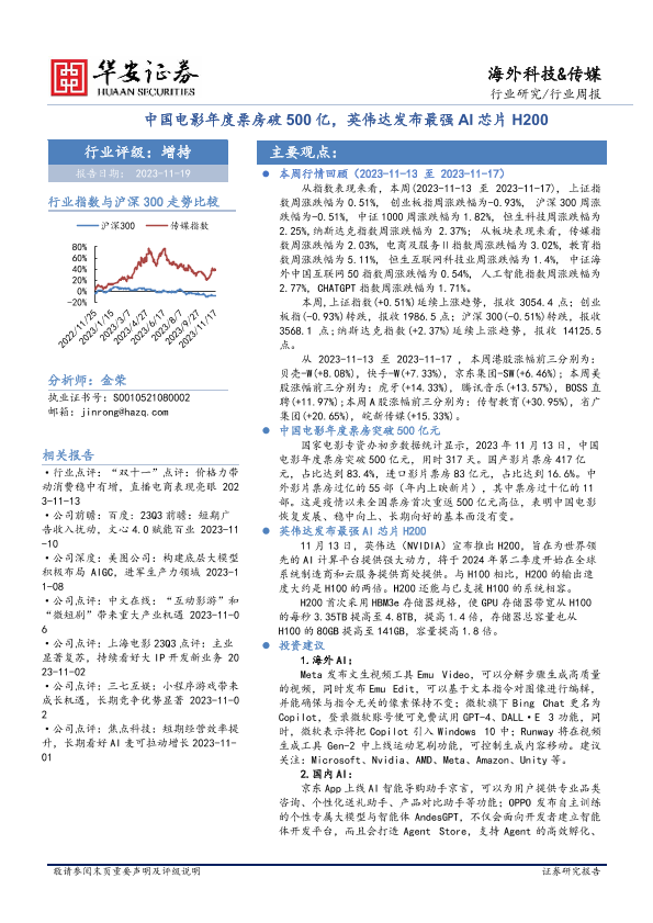 【华安证券】【20231119】中国电影年度票房破500亿,英伟达发布最强AI芯片H200-35页