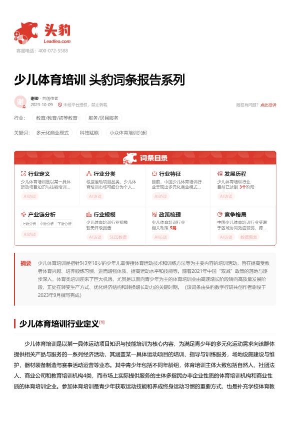 【头豹研究院】【20231009】少儿体育培训 头豹词条报告系列-16页